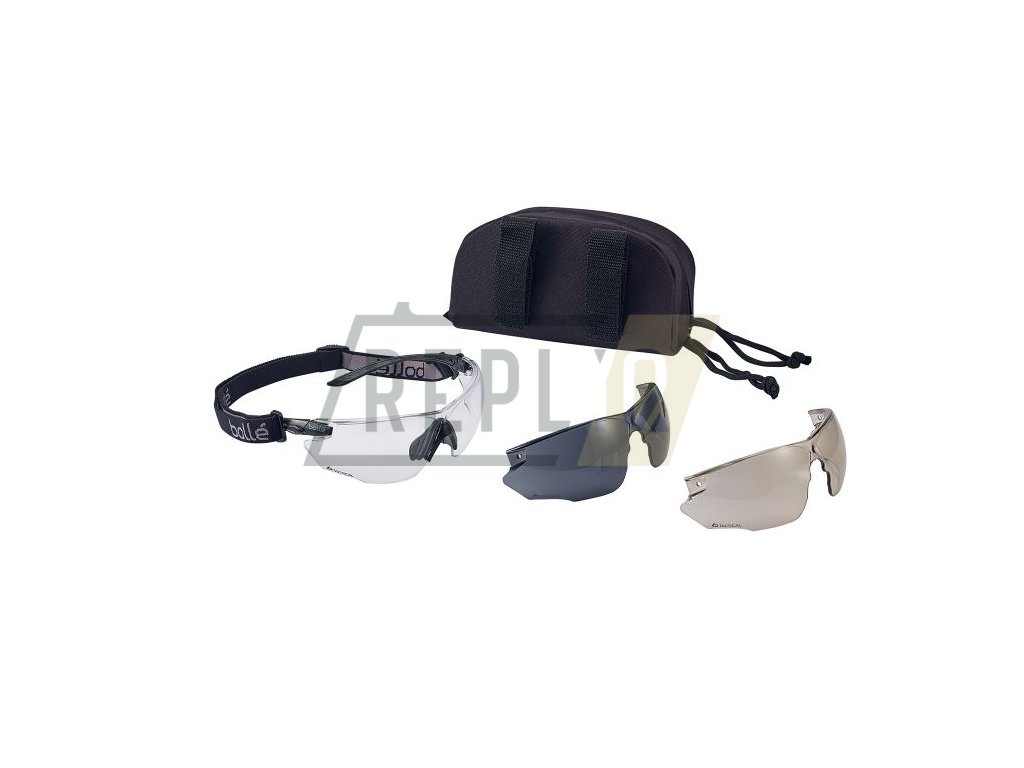 Balistické ochranné brýle Bolle Combat se třemi výměnnými skly, splňující jak civilní normu EN 166 pro ochranné pomůcky, tak vojenskou normu NATO STANAG 4296 pro balistickou odolnost.