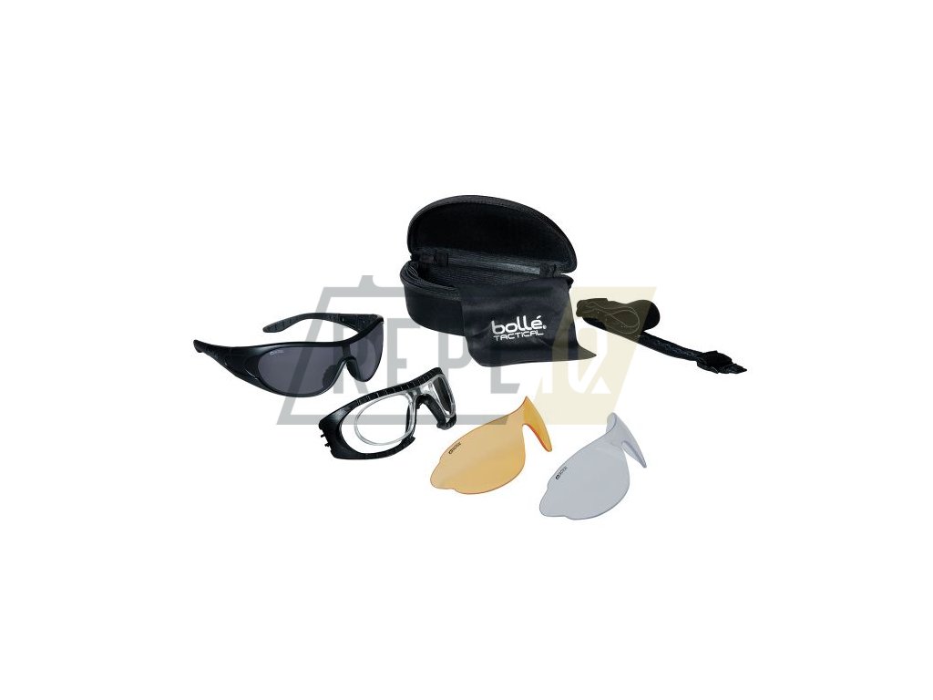 Balistické brýle Bolle Raider se třemi výměnnými skly, splňující jak civilní normu EN 166 pro ochranné pomůcky, tak vojenskou normu NATO STANAG 2920 pro balistickou odolnost.