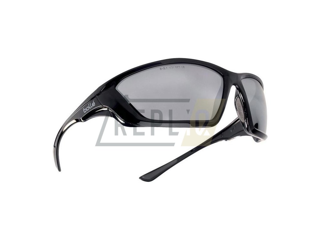 Balistické sluneční brýle Bolle SWAT s kouřovými skly, splňující jak civilní normu EN 166 pro ochranné pomůcky, tak vojenskou normu NATO STANAG 4296 pro balistickou odolnost.