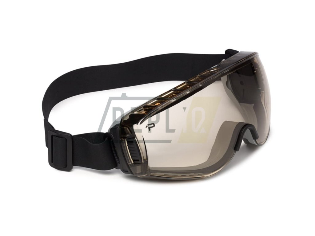 Polykarbonátové čočky o tloušťce 2,1 mm nijak neomezují zorné pole a disponují prémiovou vrstvou PLATINUM, která zabraňuje zamlžování a chrání vůči poškrábání jemnými částicemi. Hnědá barva čoček propouští cca 65% viditelného světla a je vhodná do prostředí, kde se rychlé střídá světlo a tma. Rám je vyrobený z kombinace polypropylenu a měkké a na omak příjemné termoplastické gumy. Neoprenový elastický pásek zajišťuje optimální komfort při nošení.
