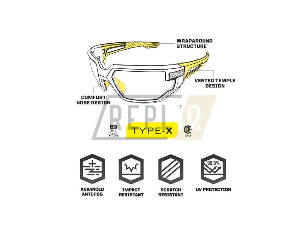 Sportovněji laděné ochranné brýle vyznačující se pohodlným rámem, který bezpečně obepne váš obličej. Rám brýlí i čočky jsou vyrobeny z odolného polykarbonátu, přičemž čočky disponují ochrannou vrstvou proti zamlžení i poškrábání, navíc filtrují 99% škodlivého UVA a UVB záření. Bočnice brýlí jsou z části odvětrávané, jejich konce jsou pokryté protiskluzovým TPR.
