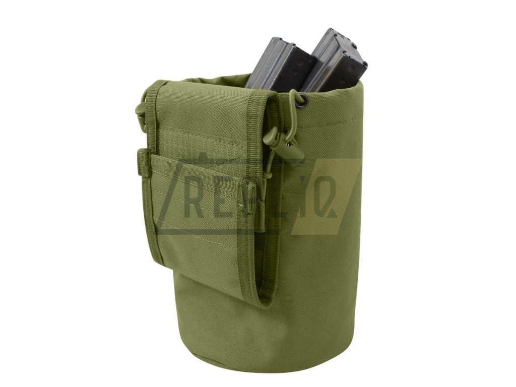Skládací pouzdro na prázdné zásobníky - odhazovák. Vrchní lem lze stáhnout gumovou šňůrou a zavřít klopou na suchý zip. Rozměr 21 x 14 cm (výška x průměr).