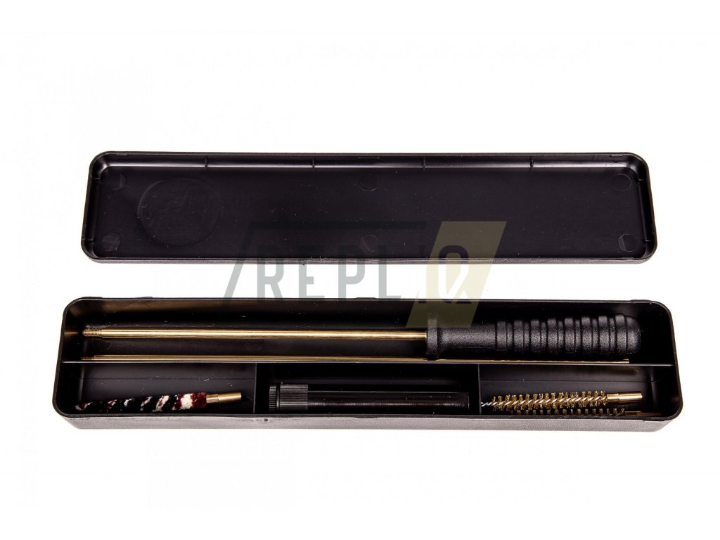 Každá zbraň potřebuje čas od času vyčistit hlaveň a tato sada je určena přesně k tomuto účelu. Hodí se pro všechny zbraně v ráži 7,62 mm (.30).Plastová krabička obsahuje rukojeť, dvě mosazné tyčinky vytěráku, tvrdý mosazný kartáček, plastový kartáček, filcovou lacetku a plastovou nádobku na olej.