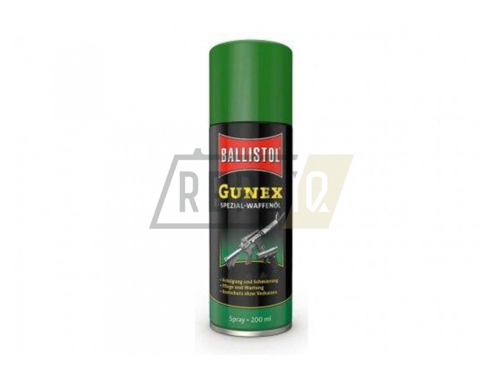 Ballistol Gunex je určený k ošetření kovových částí. Odpuzuje vlhkost, dokonale odstraní střelný prach a nánosy červené mosazi. Po jeho nanesení je povrch hladký, kluzký a ošetřený proti vlhkosti. Gunex je určen do rozmezí teplot od -50°C do +100°C.Olej je vhodný nejen na zbraně ale také pro ošetření teleskopických udic, navijáků, pro použití v domácnosti, garáži i v zemědělství.