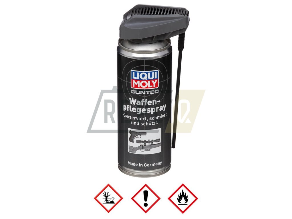 Konzervační a mazací olej ve spreji pro zbraně a jiné kovové předměty. S vysokou přilnavostí a střední viskozitou. Proniká do hloubky materiálu a vytváří ochrannou vrstvu, která zmenšuje mechanické opotřebení a vytěsňuje vodu, čímž chrání před korozí materiálu. Udržuje si viskozitu, nehrudkovatí, nelepí. Nepoškozuje plasty, lze použít i k ošetření dřeva.