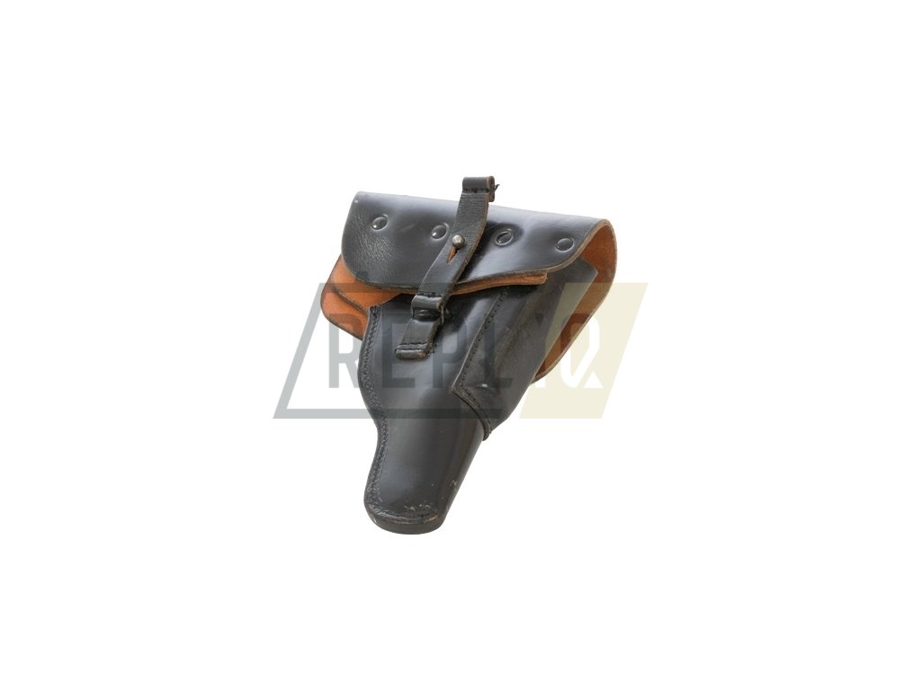 Použité pistolové kožené pouzdro pro pistole P38/P1. Černé provedení. originálné použité zboží. Rozměry (cca): vnitřní výška pouzdra - 21 cm, vnější výška - 23 cm, šířka chlopně v horní části - 15,5 cm.