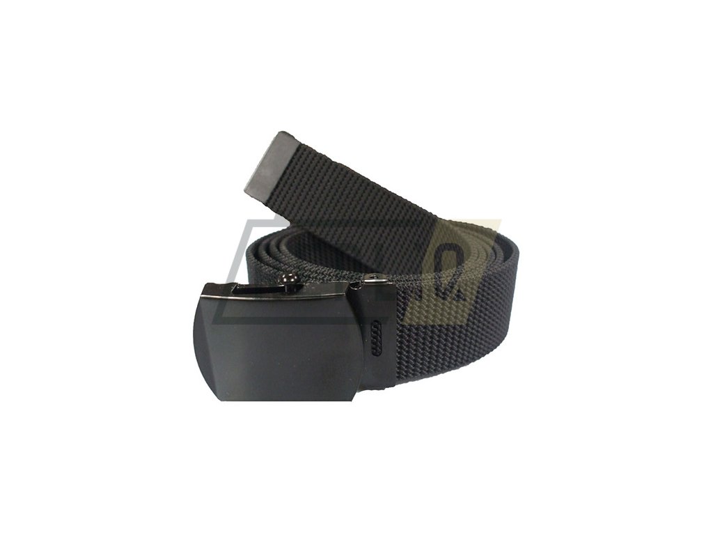 Černý armádní nylonový opasek s černou přezkou se vyznačuje velkou pevností a hladkým průběhem přes přezku.