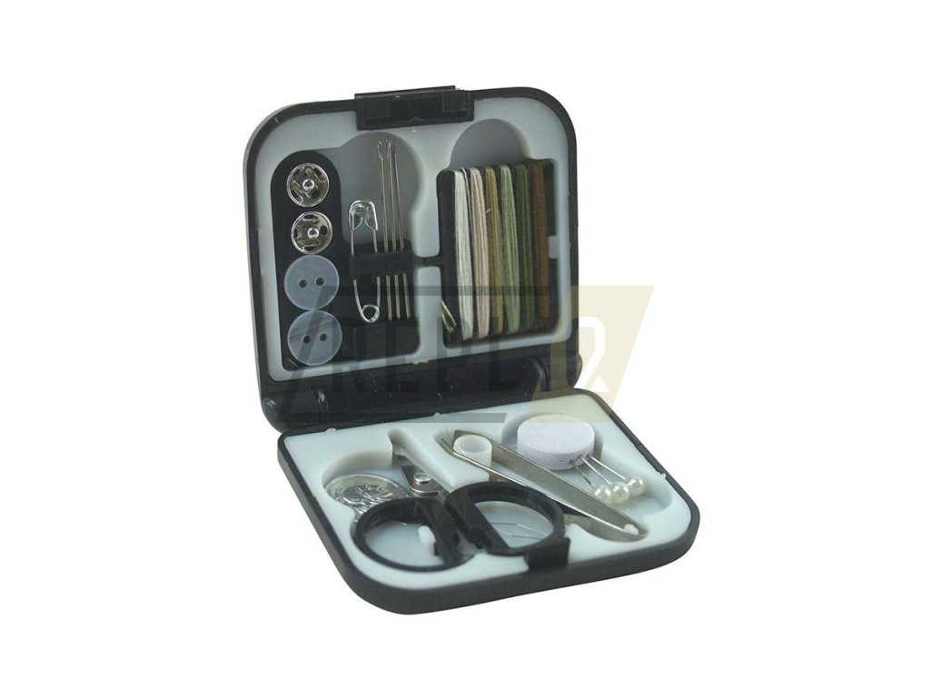 Praktický set šití uložený v minimalistické plastové krabičce. Obsahuje vše potřebné k nouzové opravě oblečení.