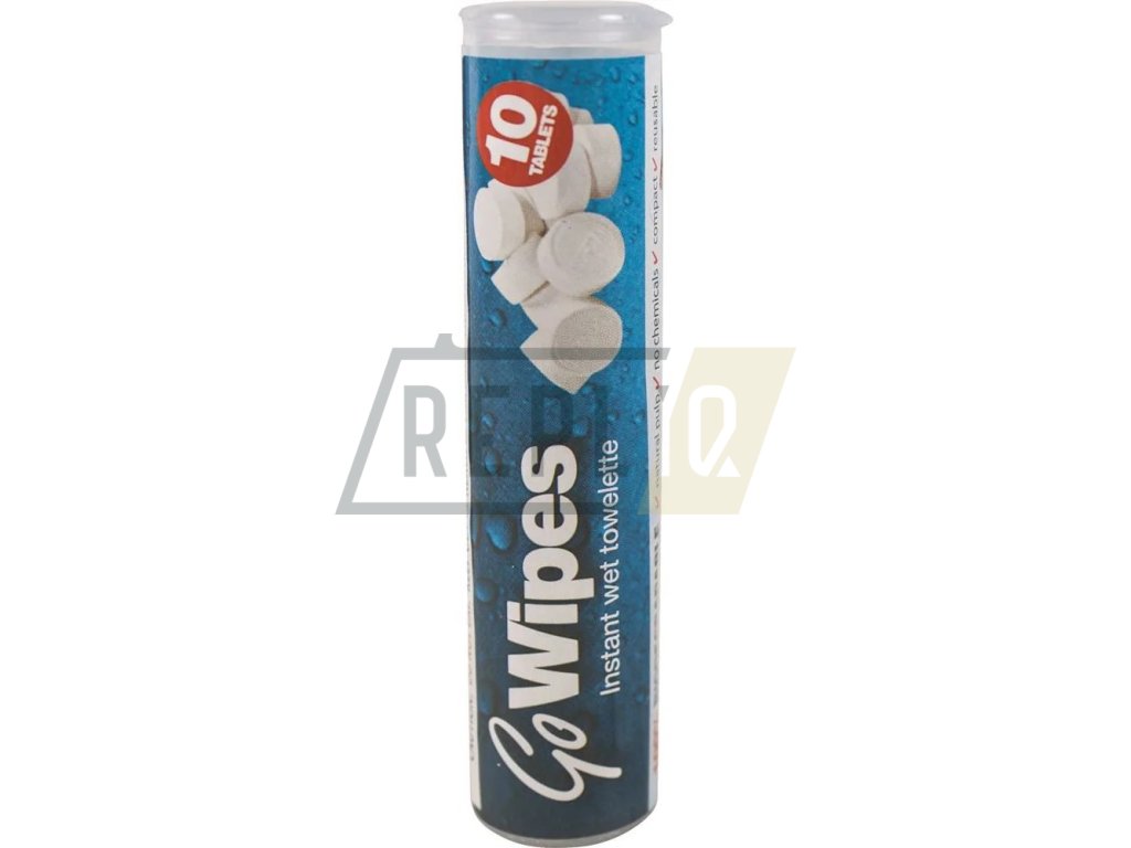 Tuba obsahující deset utěrek o velikosti mince vyrobených z přírodního a snadno rozložitelného materiálu, který nemůže být kontaminován choroboplodnými zárodky ani bakteriemi. K jejich použití stačí na ubrousek nalít trochu vody. Podle použité teploty je můžete využít jako studený či teplý obklad.