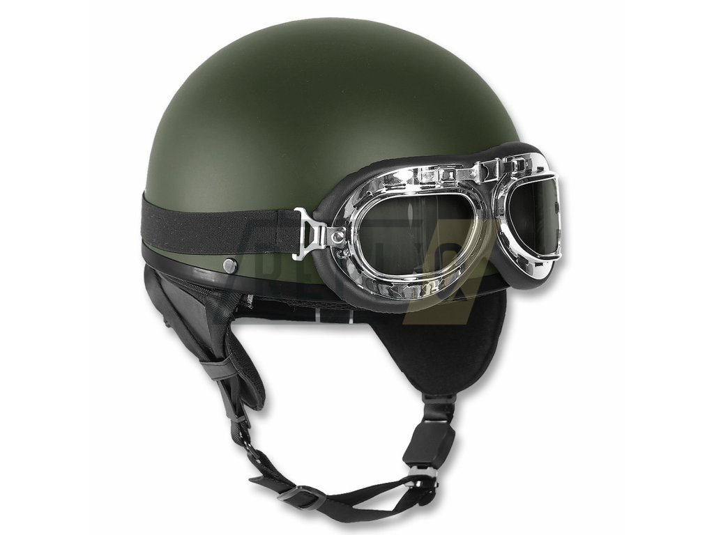 Helma motocyklová RETRO včetně brýlí ZELENÁ