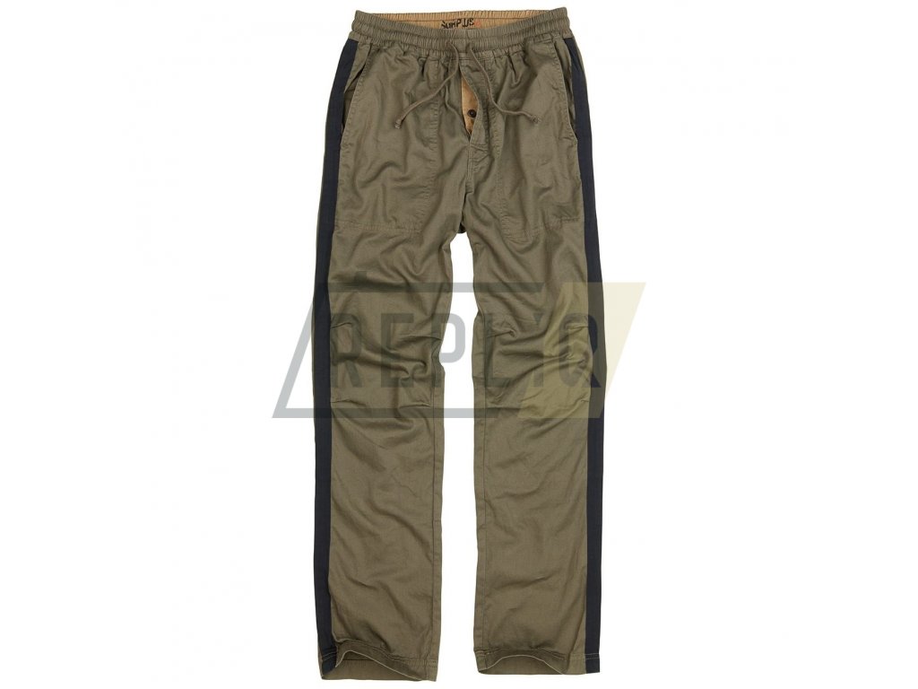 Od ostatních kalhot se odlišují absencí nadbytečných kapes (pouze boční a zadní kapsy s klopami). Pohodlné nošení umocňuje stahovací tkanice v pase.