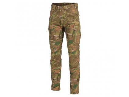 Pohodlné taktické kalhoty pro profesionální použití. Na výrobu kalhot byl použit dvoucestně strečový materiál v poměru 65% polyester a 35% bavlna v pevné rip-stop úpravě. Tento materiál je dostatečně pružný na to, aby se přizpůsobil uživateli i v náročných dynamických situacích. Povrch kalhot je ošetřen speciální úpravou Teflon™ od firmy Dupontt®, díky které skvěle odolávají znečištění. Exponovaná a silně namáhaná místa kalhot jsou trojitě prošívaná a sed je zesílen diamantovým střihem. Kolena disponují vnitřním přístupem pro vložení chráničů.