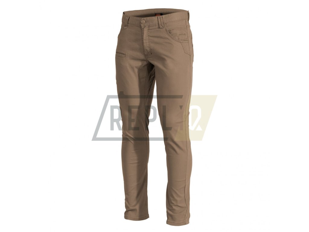 Na kalhotách naleznete celkem devět kapes. Dvě klasické boční kapsy se šikmým vstupem mají zesílený okraj, takže jsou vhodné na přenášení výbavy s klipem jako jsou nože, pera či skládací kleště. Nad šikmými kapsami je další pár kapes s rovným vstupem. Na pravém stehně naleznete plochou rovnou kapsu, ideální na přenášení například mobilního telefonu. Na zadní straně jsou dvě dvojité rovné kapsy, perfektní na uložení ploché výbavy jako jsou zápisníky, peněženka či pistolové zásobníky. Celkem šestice látkových oček (na přední straně kalhot jsou očka zdvojená) poslouží na opasky do šíře 45 mm.