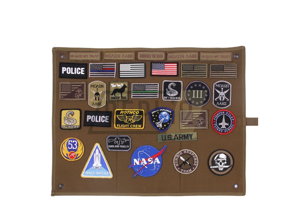 Obal/plachta/nástěnka - na pojmenování zas tak nezáleží, důležitější je, že s touhle věcičkou budete mít vaše velcro nášivky všechny přehledně uskladněné. Celkový rozměr je 63,5 x 47 cm. Obal má v rozích 4 kovová oka pro zavěšení na hřebíky nebo skoby. Na zadní straně najdete pásek se suchým zipem, který plachtu "zapíná", aby zůstala srolovaná.