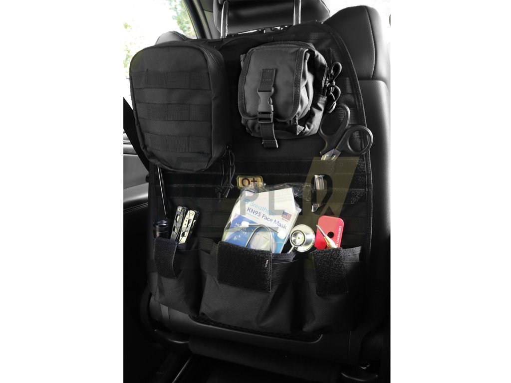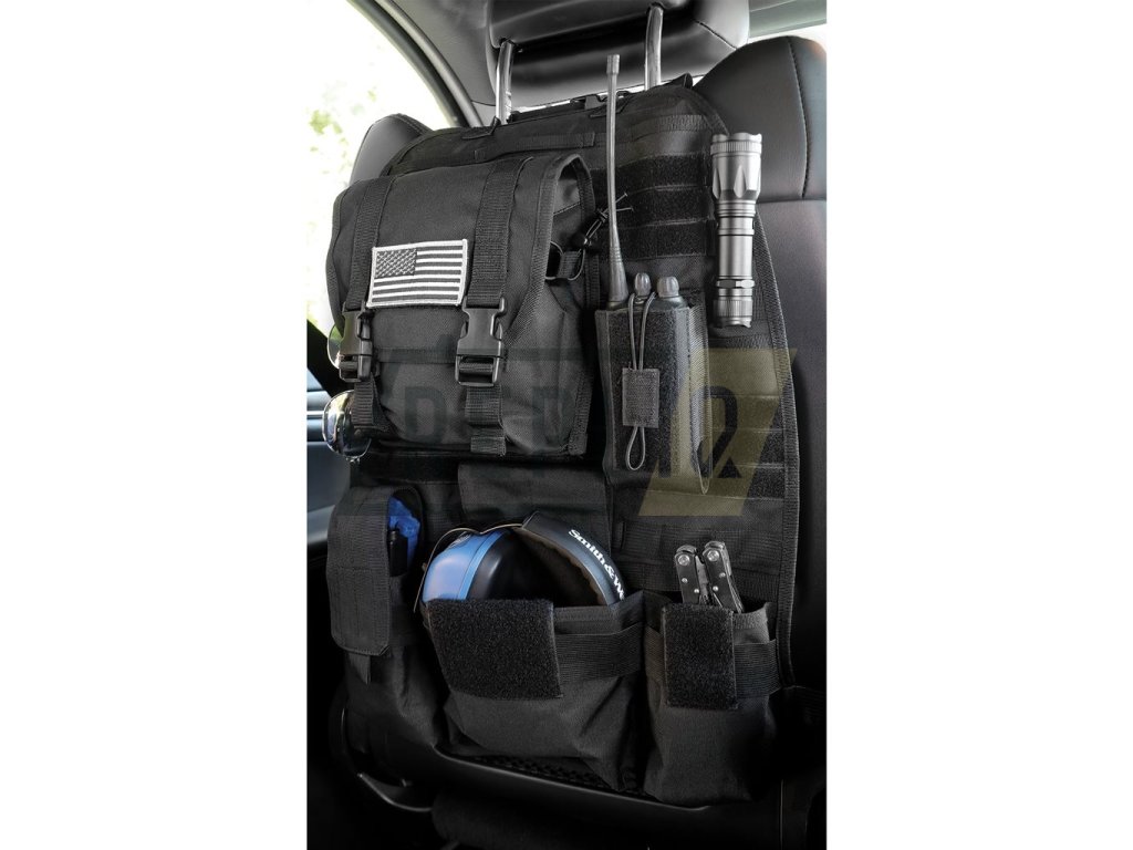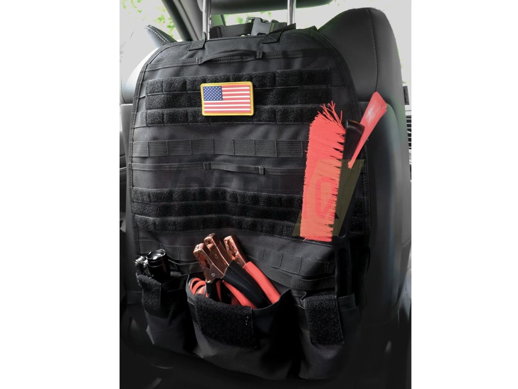 Závěsný panel na sedadlo, který vám umožní jednoduše organizovat výbavu v autě. Díky popruhům s kovovými průchodkami a jednomu popruhu s fastex přezkou je panel kompatibilní s většinou automobilových sedaček. Panel je vyrobený z odolného 600D polyesteru.