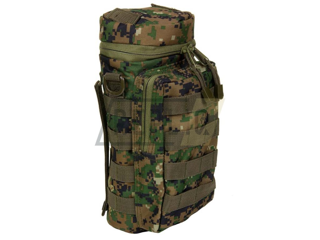 Taktické pouzdro určené na zásobníkovou láhev s plynem. Díky MOLLE vazbě jej můžete nasadit na vybavení s MOLLE systémem - taktickou vestu, batoh apod. Na bocích D kroužky pro zavěšení pomocí karabiny nebo na ramenní popruh s karabinou. Zavírání na dvoucestný zip s táhly. Přední kapsa na drobnější vybavení, zapínání na zip.