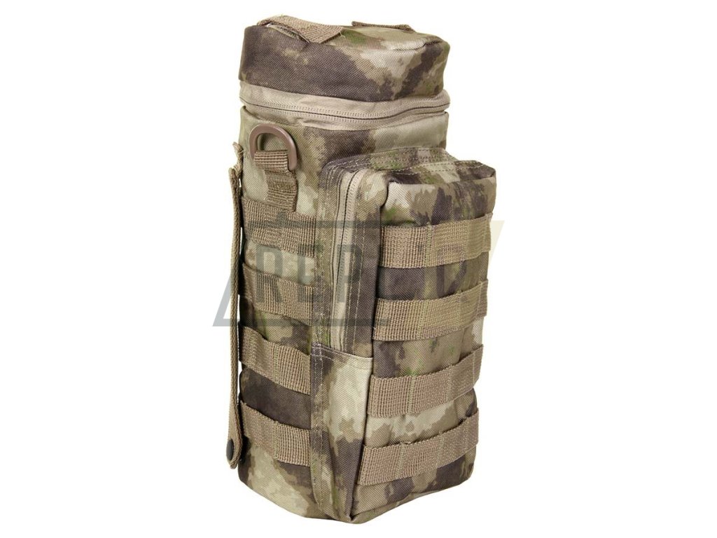 Taktické pouzdro určené na zásobníkovou láhev s plynem. Díky MOLLE vazbě jej můžete nasadit na vybavení s MOLLE systémem - taktickou vestu, batoh apod. Na bocích D kroužky pro zavěšení pomocí karabiny nebo na ramenní popruh s karabinou. Zavírání na dvoucestný zip s táhly. Přední kapsa na drobnější vybavení, zapínání na zip.