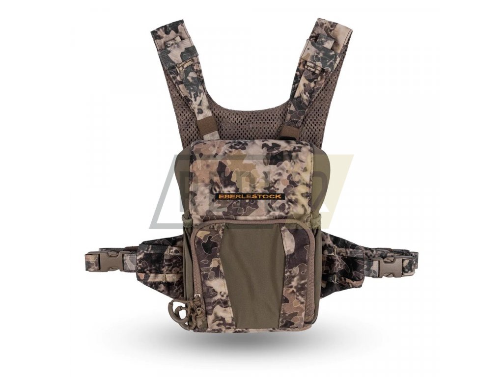 Pouzdro RECON je navrženo tak, aby hlavní kapsu pro uložení optiky bylo možné díky magnetickému zavírání rychle otevřít a zavřít jednou rukou. Dalekohled lze v kapse fixovat pomocí dodávané elastické odepínatelné šňůry. Na přední straně pouzdra naleznete menší kapsu přístupnou skrze dvoucestný zip opatřený mohutnými táhly. Uvnitř kapsičky naleznete dvě ploché přihrádky perfektní k uložení drobné výbavy, peněz apod. Na bocích se nachází dvojice kapes s elastickým okrajem a dvě malá "křidélka" opatřená modulární vazbou, která poslouží k připevnění dodatečného vybavení z řady RECON od značky EBERLESTOCK, či jiného vybavení kompatibilního s MOLLE/PALS systémem. Zadní strana pouzdra je mohutně polstrována pomocí prodyšné 3D síťoviny. Nosný systém pouzdra disponuje průvleky pro hadičku hydratačního systému a je odepínatelný pomocí plastových přezek. Navíc lze na těle velmi jednoduše a rychle velikostně nastavit pomocí přitažení bočních popruhů. Zadní strana postroje je plochá, nijak nepřekáží při případném nošení batohu a je opatřená redukovanou vazbou standardu MOLLE 10, kterou můžete použít k fixaci pouzder pro výbavu či k připevnění menšího hydratačního batohu. Díky panelu suchého zipu na spodní straně lze k pouzdru připevnit další kompatibilní výbavu.