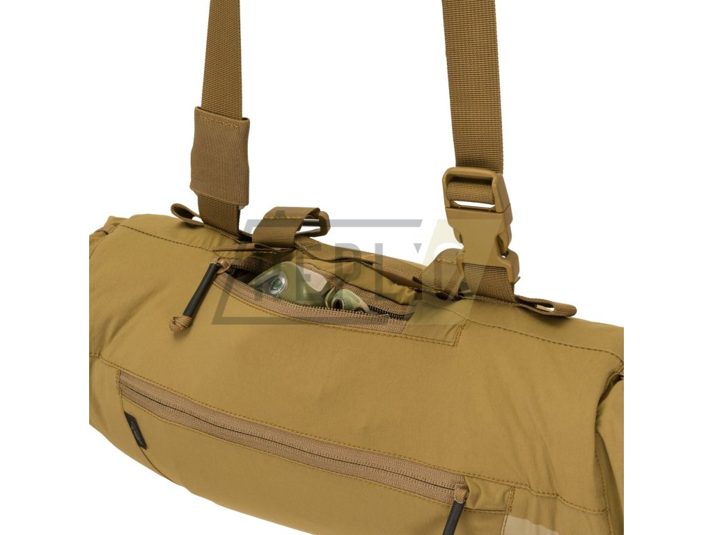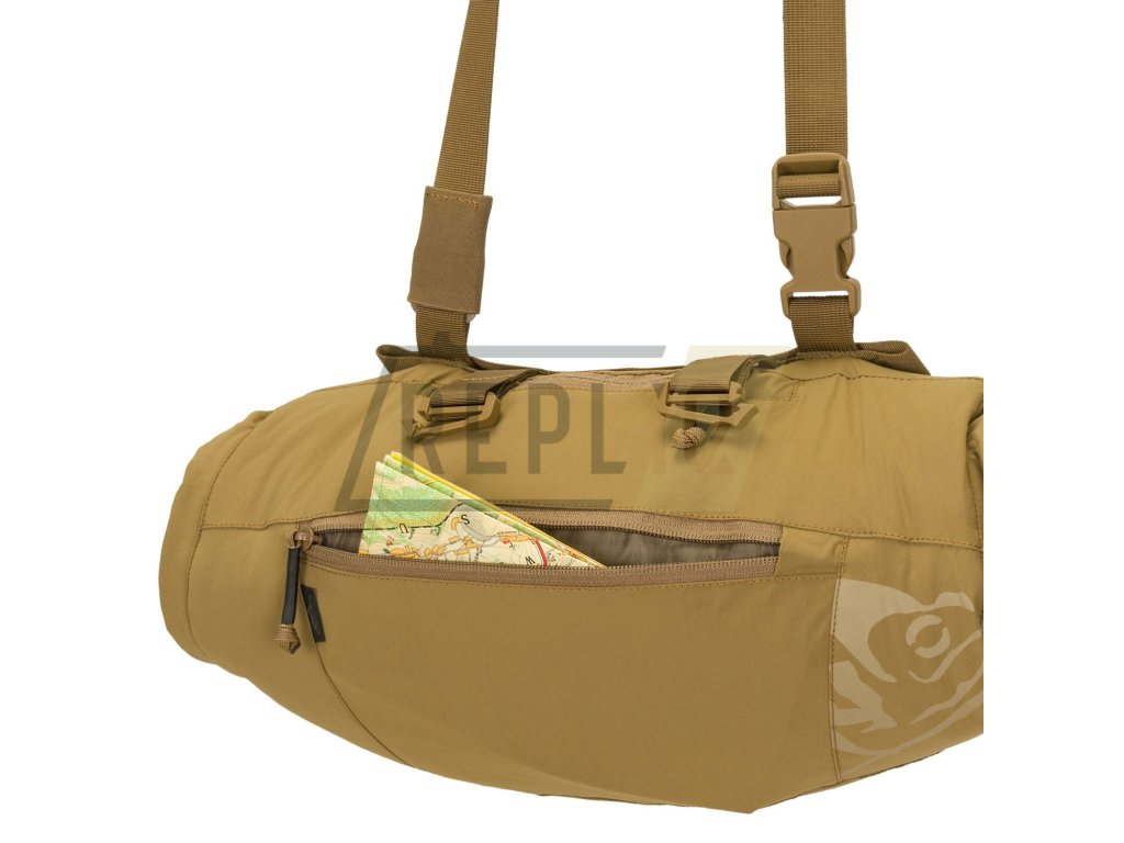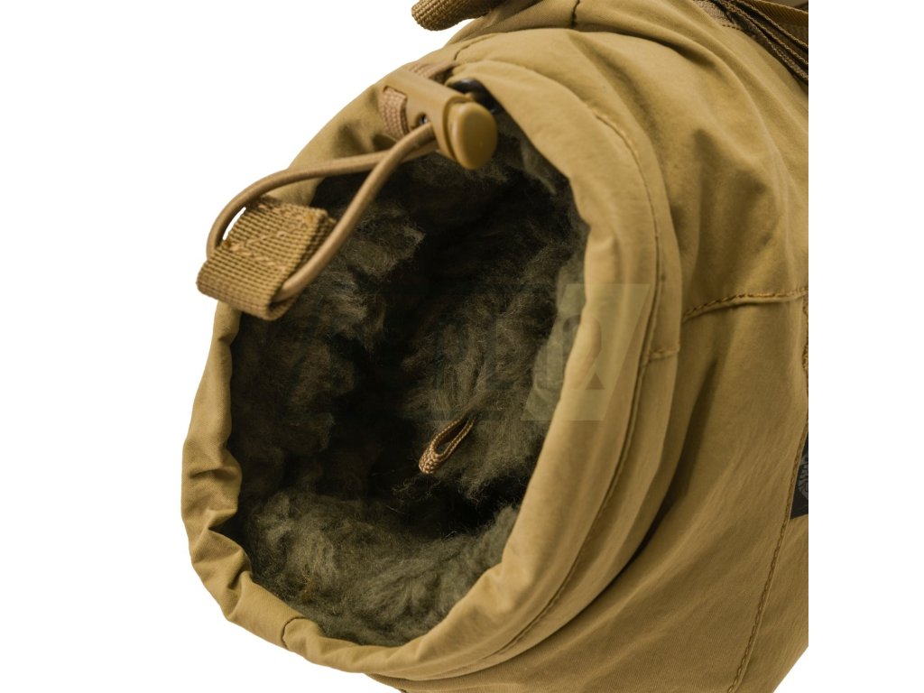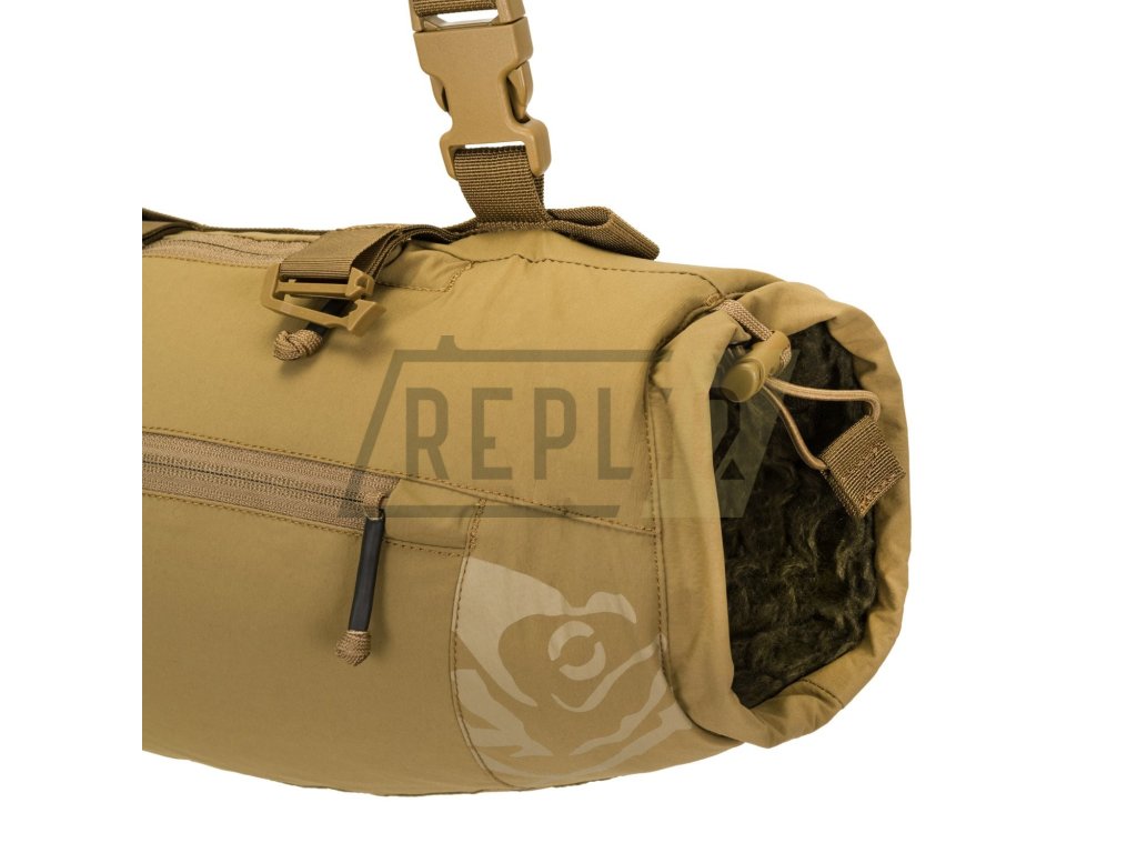 Výplň ohřívače tvoří kvalitní materiál Climashield Apex o gramáži 67g, který drží teplo i když je vlhký. Navíc je interiér pokryt speciálním polyesterovým materiálem s dlouhým chlupem, ten urychluje proces ohřívání a pomáhá zachovávat teplo. V případě potřeby uvnitř najdete i malou kapsu na vložení chemického ohřívání. Na vnější straně ohřívače naleznete dvě ploché kapsy uzavírané YKK®. Tyto kapsy jsou ideální na uložení menší výbavy jako jsou klíče od auta, peněženka či chytrý telefon. Odepínatelný nosný popruh o šířce 25 mm vám umožní ohřívač nosit kolem krku, či kolem pasu. POkud by vám takové řešení nevyhovovalo, dvě Duraflex® přezky mohou sloužit k připevnění na libovolný MOLLE/PALS chestrig.