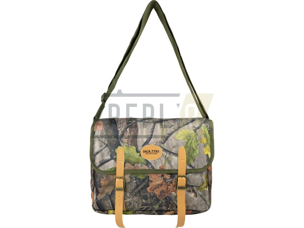 Větší brašna přes rameno v elegantním loveckém anglickém stylu s koženými doplňky, od firmy Jack Pyke. Originální lesní maskování EVO. Vhodná nejen pro lovce a myslivce.