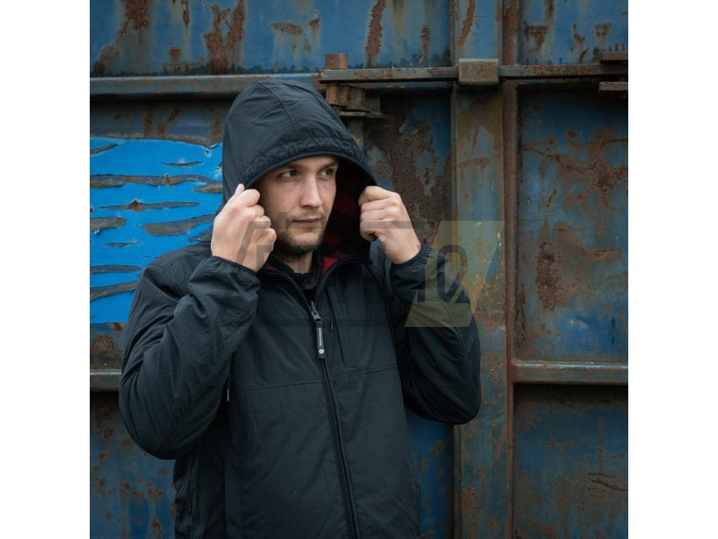 Obě strany bundy nabízí jednu hrudní kapsu a dvojici kapes na ruce v pase. Zapínání bundy je řešeno pomocí centrálního SBS zipu s oboustranným táhlem. Manžeta rukávů je elastická tak, aby zabránila profouknutí.