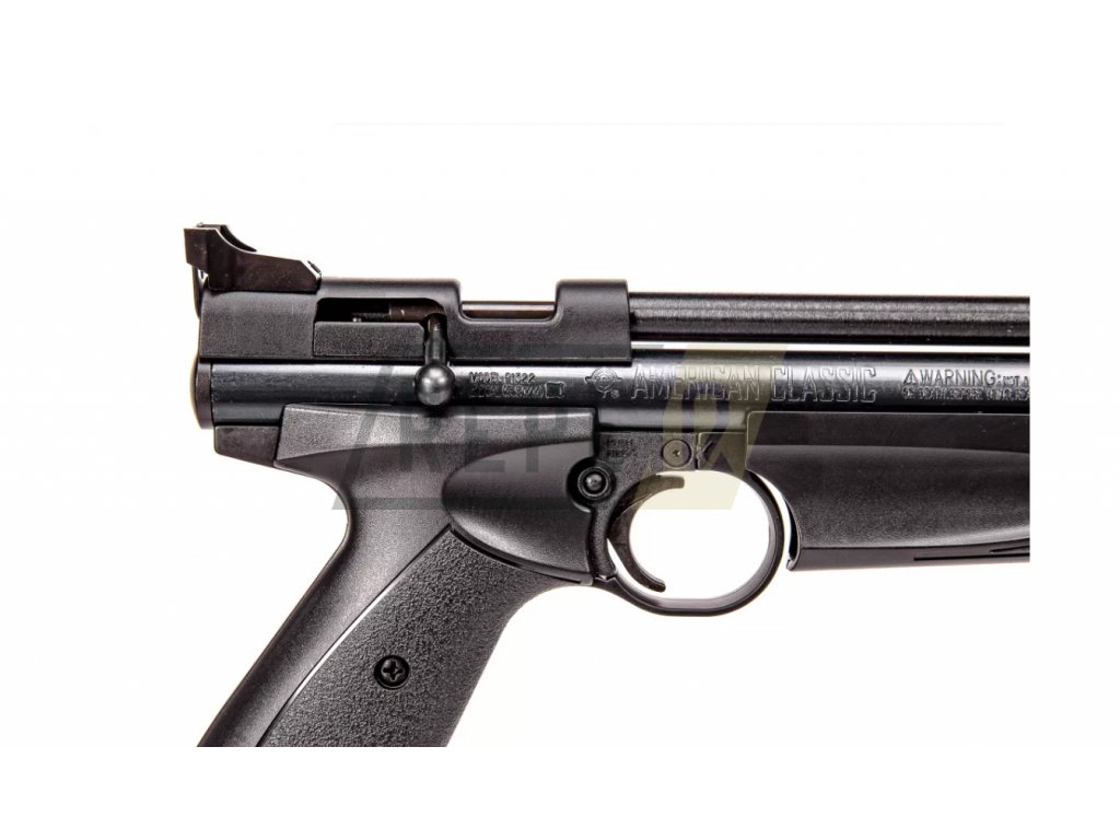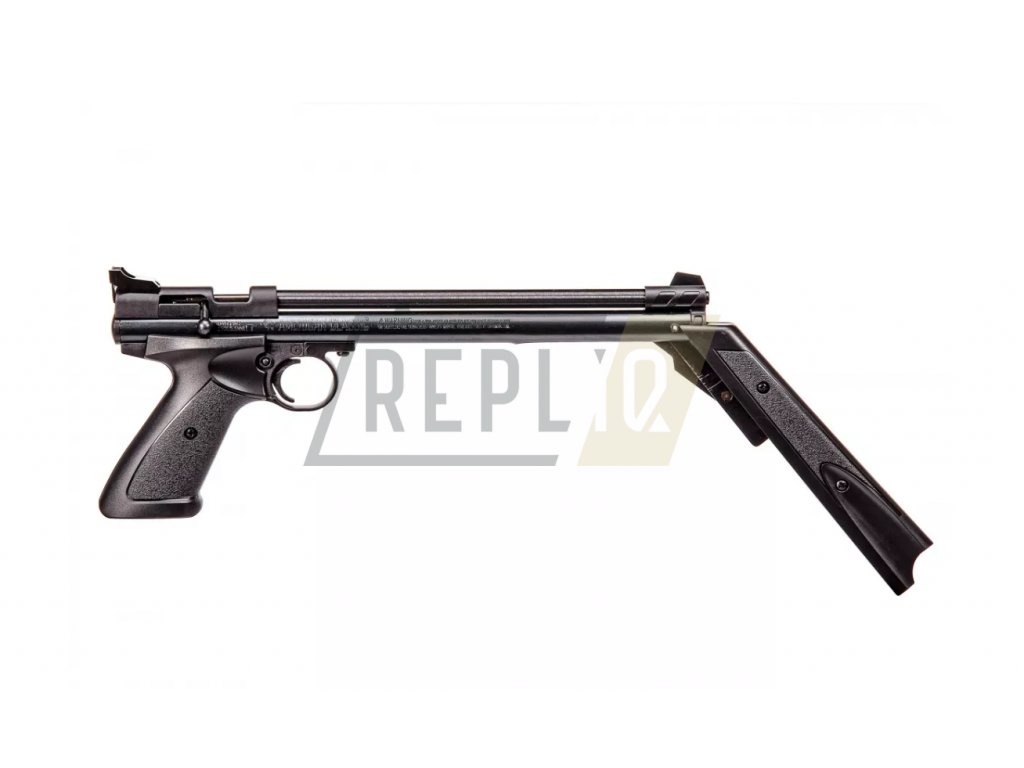 Jednoranná ruční vzduchovka Crosman 1322 se systémem Pump Action v provedení BLACK s černou rukojetí a předpažbím. Střelu z hlavně zbraní typu Pump Action žene vzduch z vlastního zásobníku, který se tlakuje integrovanou pumpou pod hlavní předpažbím zbraně, vždy pro jeden výstřel.