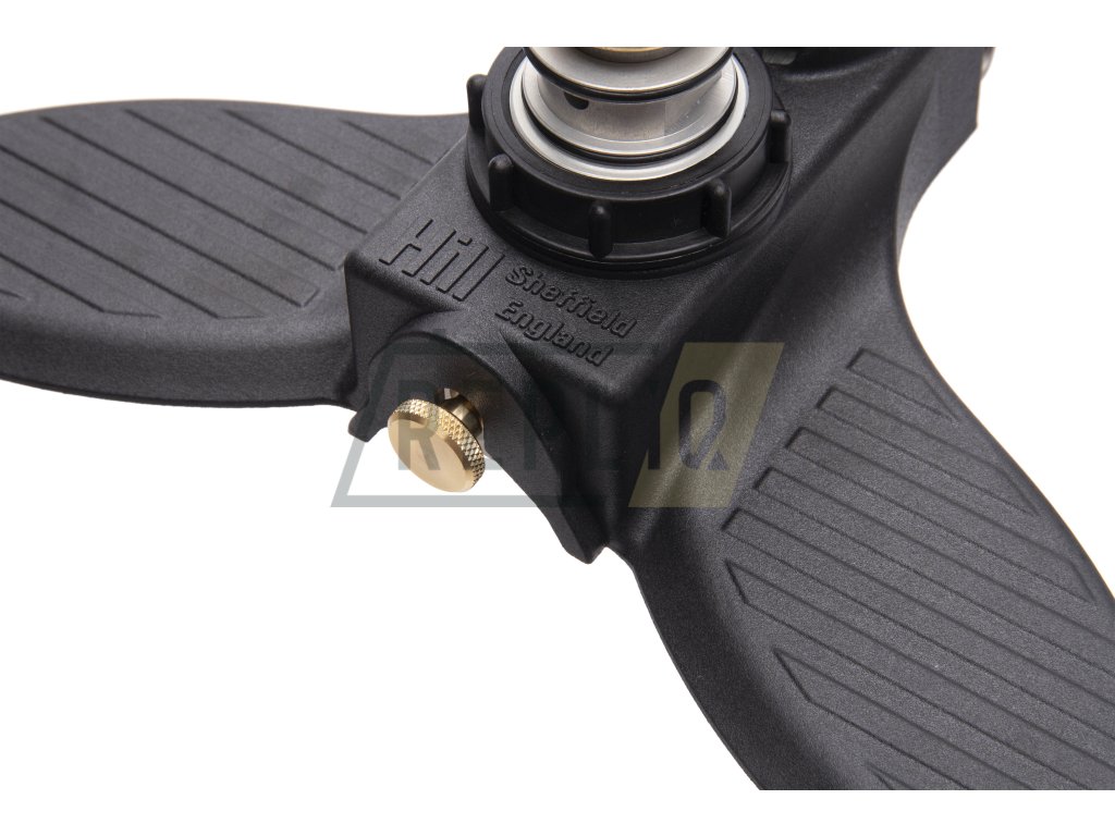 Upozornění: V kartuši u zbraně musí být ideálně alespoň 50 bar, aby bylo možné doplňovat ruční pumpou. První plnění prázdné kartuše je nutné provést z tlakové lahve!