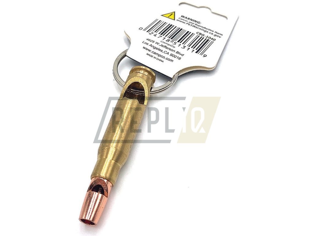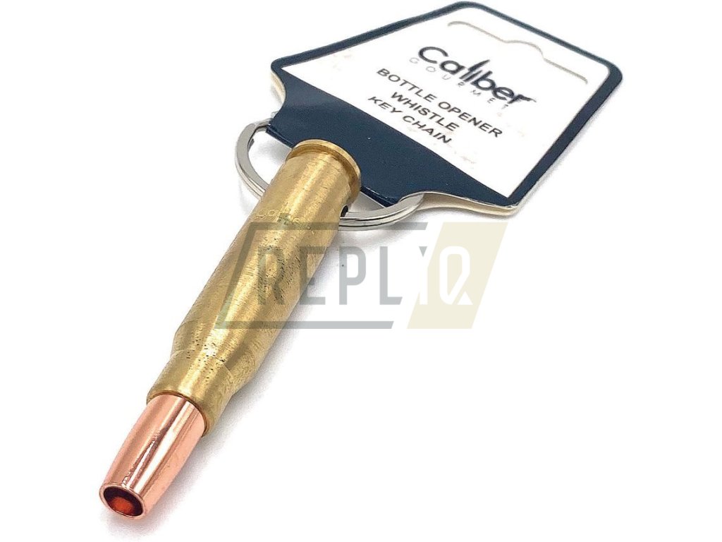 Stylová píšťalka ve tvaru nábojnice opatřená kroužkem na zavěšení na klíče. Je vyrobená z kovu a v její dolní části naleznete praktický otvírák na láhve.