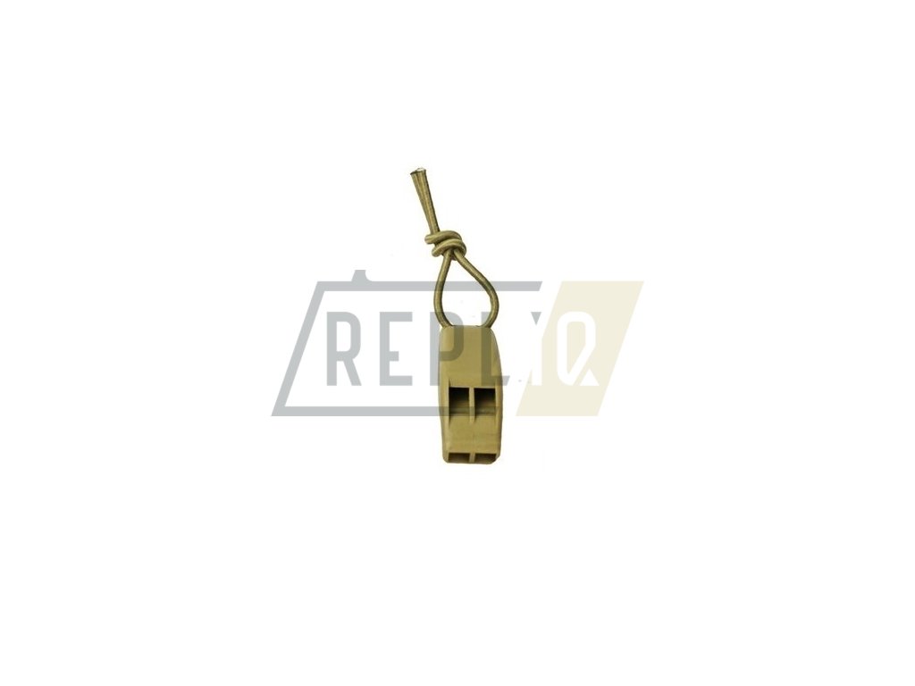 Dvoukomorová signální píšťalka od firmy Duraflex, kompaktní tělo s klipem pro připevnění na PALS vazbu.