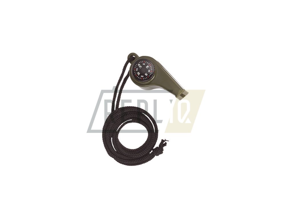 Píšťalka s vestavěným kompasem a teploměrem (upozornění: teploměr je ve stupních Fahrenheita). Včetně šňůrky.