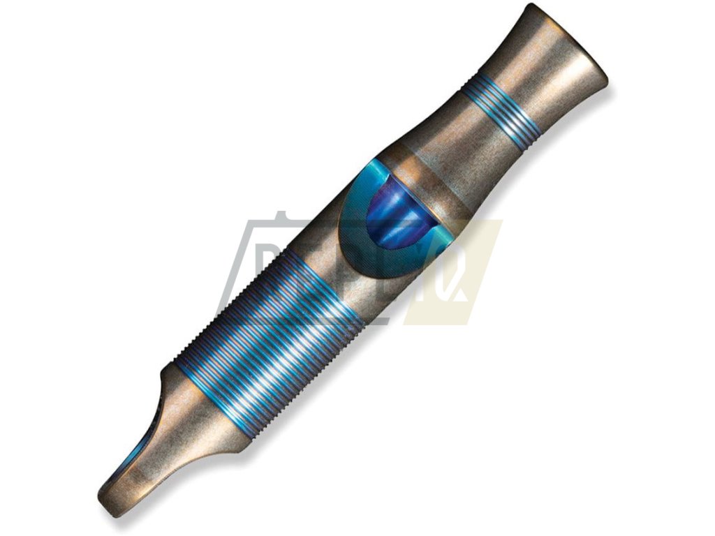 Exkluzivní, stylová píšťalka, která je díky konstrukci z titanu neobyčejně lehká a odolná. Povrch píšťalky je eloxovaný a disponuje ozdobnými prvky v modré barvě. V horní části naleznete otvor na provlečení šňůry. Dodáváno s hnědou paracordovou šňůrou.