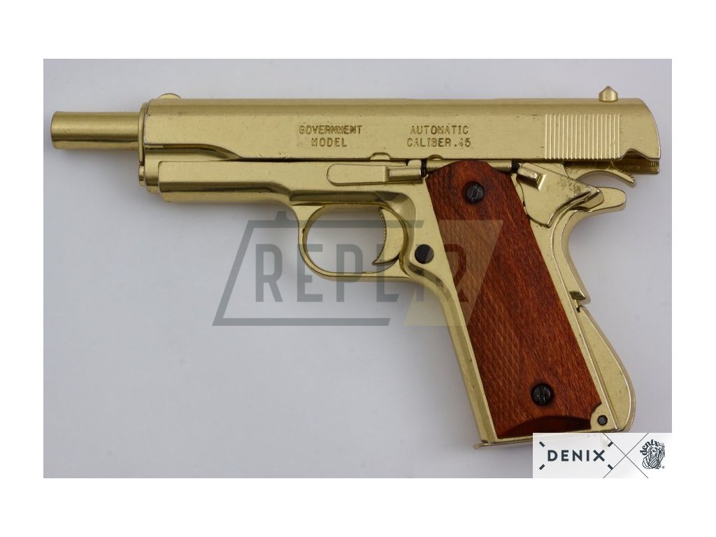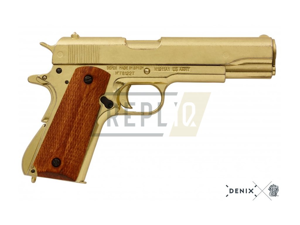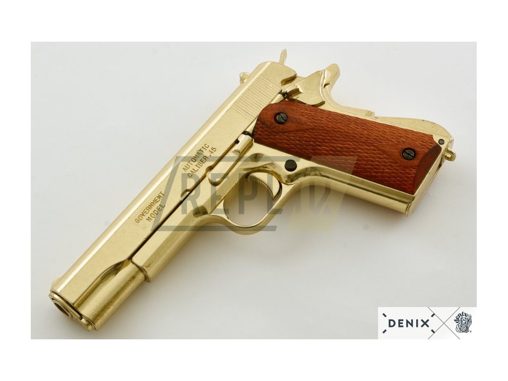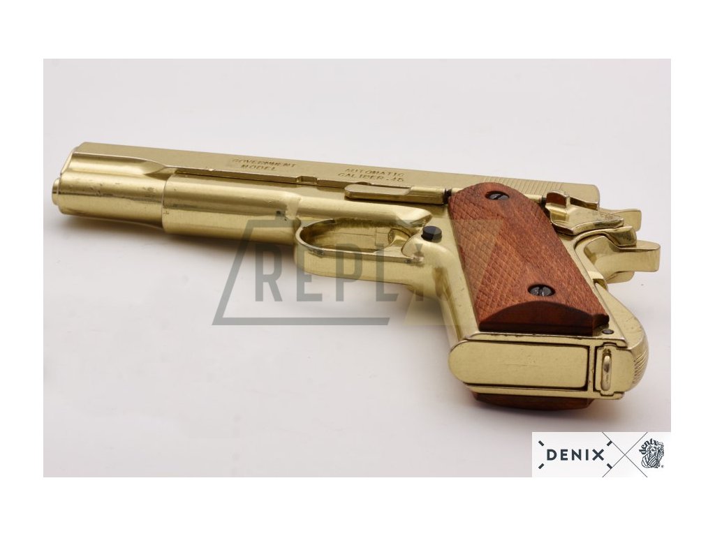 Colt 45 Government 1911 plně rozebratelná - zlaté provedení + Přívěsek na klíče DENIX