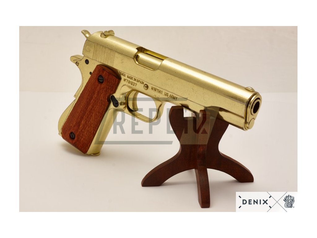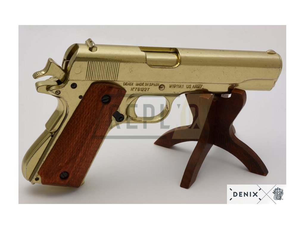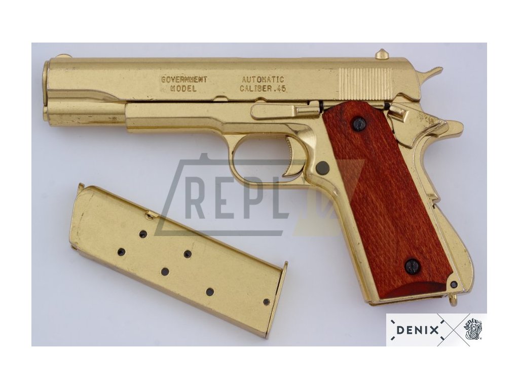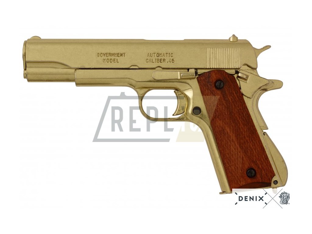 Colt 45 Government 1911 plně rozebratelná - zlaté provedení + Přívěsek na klíče DENIX