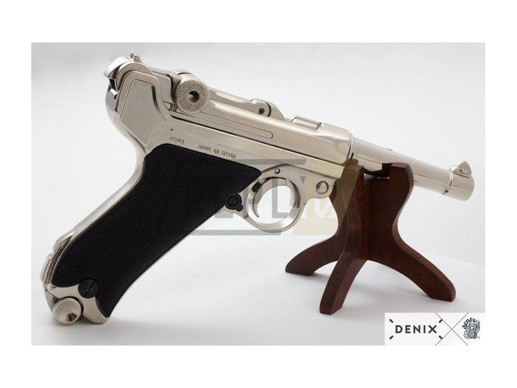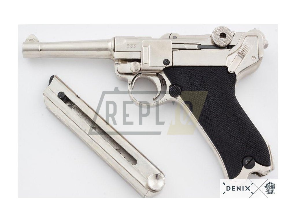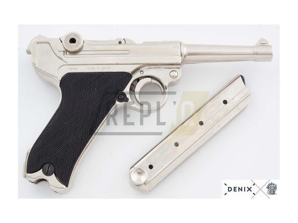 Parabellum Luger P.08, Německo 1898 (leštěný nikl) + Přívěsek na klíče DENIX
