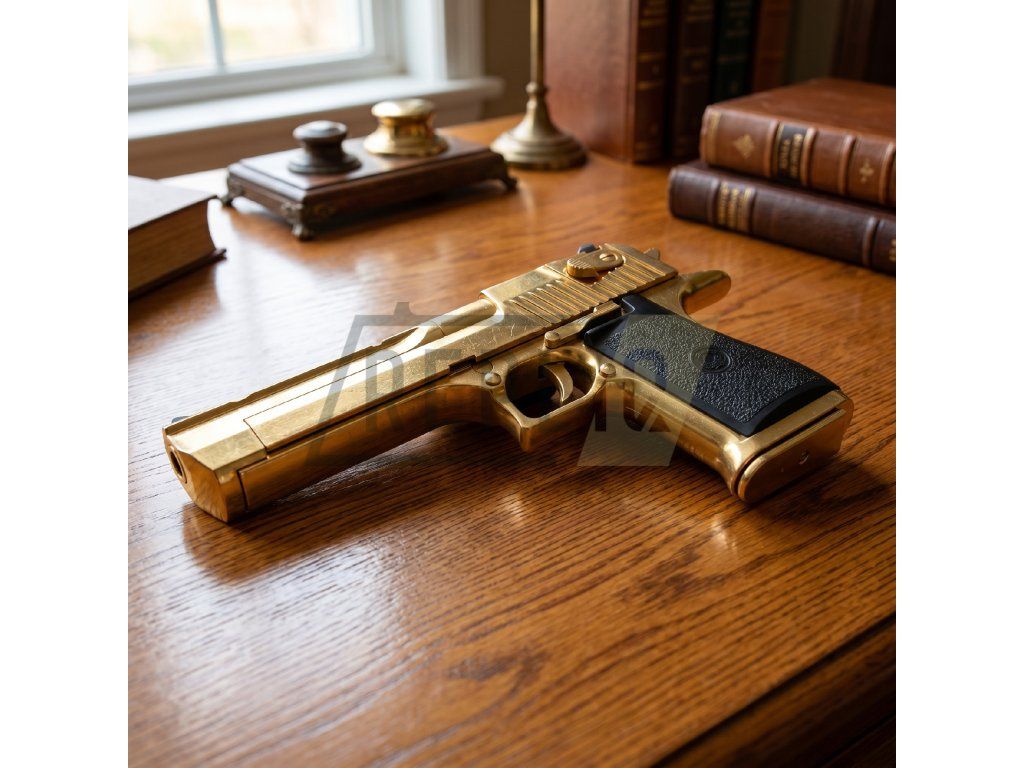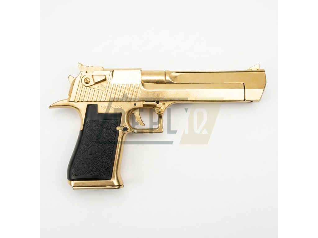 Poloautomatická pistole USA Izrael 1982 Deadpool je detailně zpracovaná celokovová dekorativní replika legendární pistole Desert Eagle z roku 1982 v atraktivním zlatém finiši. Tento model byl navržen podle verze známé z filmu Deadpool & Wolverine, kde se stal výraznou součástí výzbroje hlavní postavy. Robustní konstrukce, masivní vzhled a typická silueta z ní dělají jednu z nejrozpoznatelnějších moderních pistolí vůbec. Zlatý povrch navíc dodává replice luxusní vzhled a ještě více zvýrazňuje její filmový charakter.