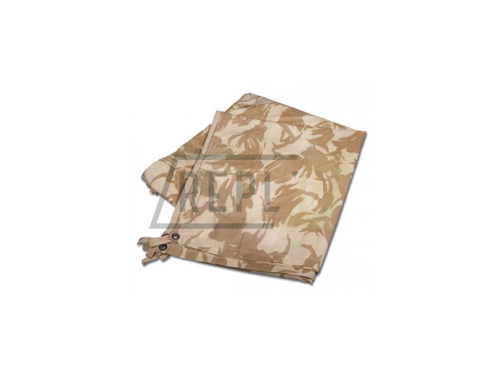 Univerzální přístřešek používaný britskou armádou. Pokud potřebujete nouzové spaní, úkryt nebo nouzový přístřešek. 12 vyztužených smyček okolo okrajů. Mosazná očka po okrajích a ve středu. Materiál: Nylon s PU potahem. Rozměr: 220x240 cm.