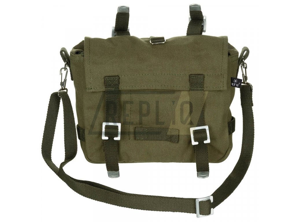 Plátěná bavlněná taška (chlebník) ve stylu německého Bundeswehru. Nastavitelný popruh, tři vnitřní kapsy, rozměry: 23 x 21 x 8 cm.