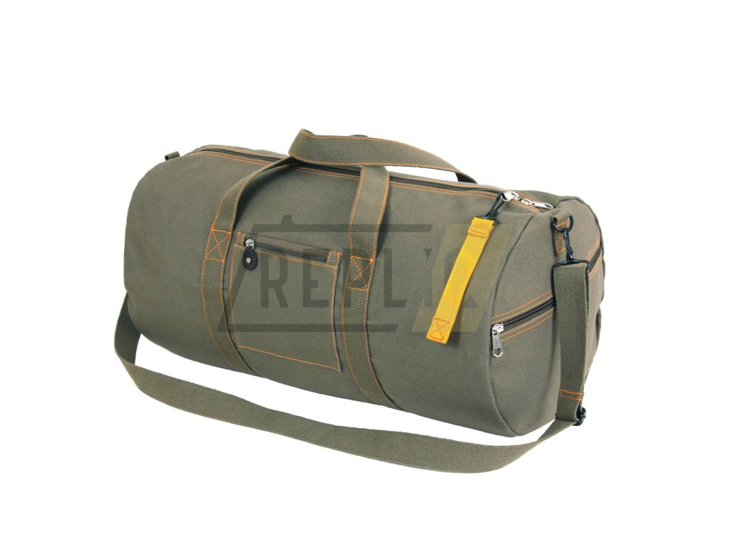 Volnačasová taška vojenského stylu. Taška má odepínací popruh, takže jí můžete nosit i v ruce. Tři menší kapsy pro malé předměty, kterým se potřebujete ihned dostat. Karabina na zipu ve stylu REMOVE BEFORE FLIGHT. Velmi kvalitní bavlna je známkou životnosti.