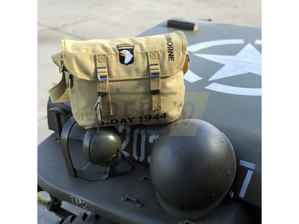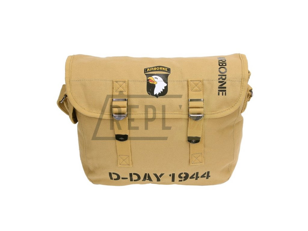 Prostorná stylová taška přes rameno s barevným znakem 101st Airborne, nápisem Airborne a ve spodní části nápisem D-DAY 1944.