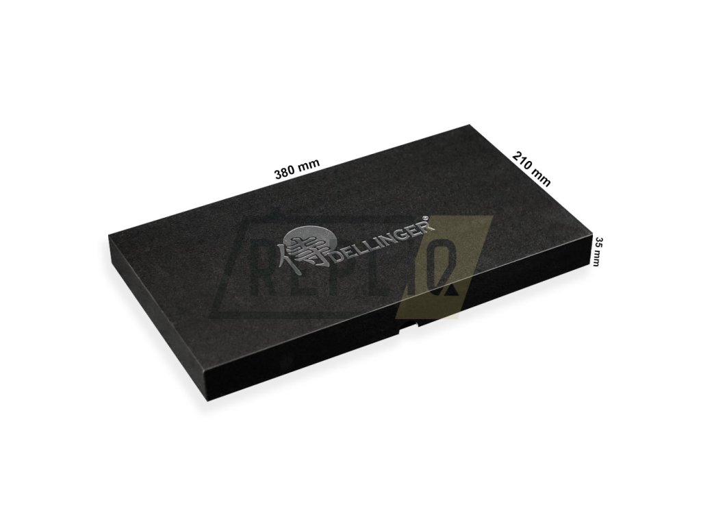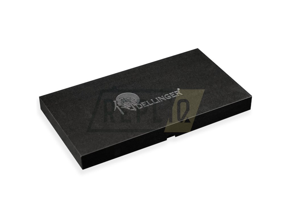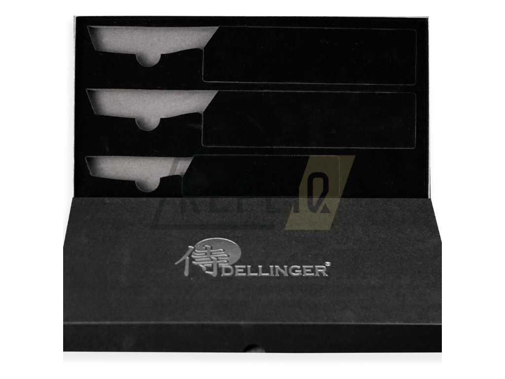 Elegantní dárková krabička Dellinger je ideálním řešením pro bezpečné uložení a stylovou prezentaci tří kuchyňských nožů. Černé matné provedení s decentním stříbrným logem dodává krabičce luxusní vzhled, vhodný jak pro osobní dárky, tak profesionální prezentaci. Vnitřní sametová výstelka chrání nože před poškrábáním a pevně je fixuje na místě. Krabička nabízí tři vyřezané pozice pro nože různých velikostí: