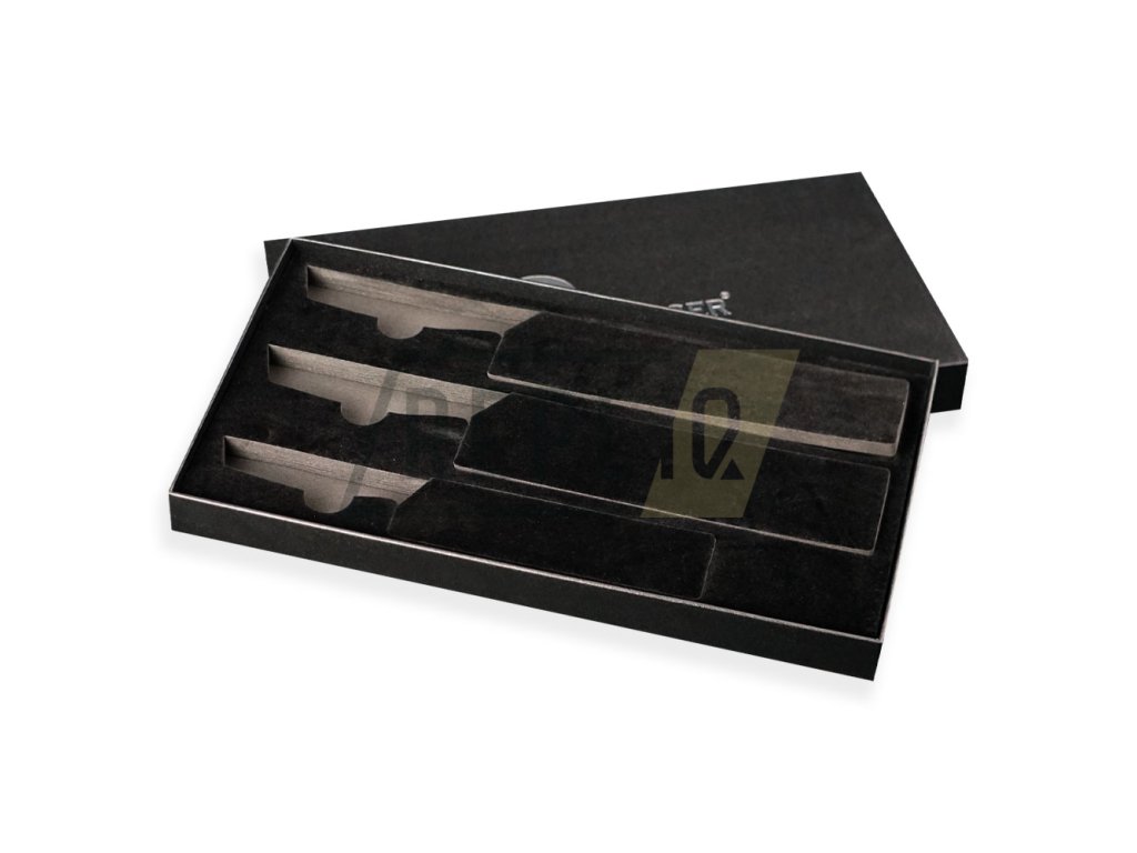 Černá dárková krabička se sametovou vystýlkou na 3 nože