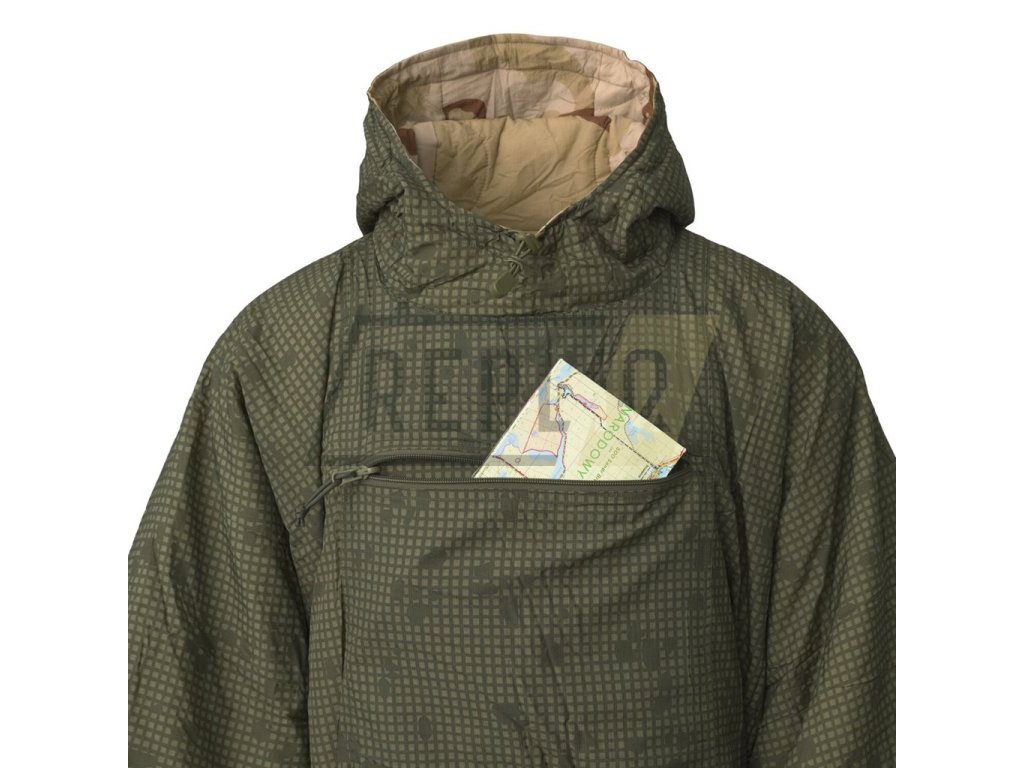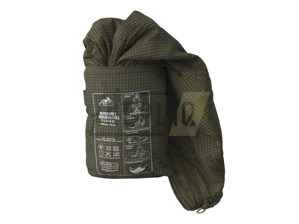 Multifunkční pončo - nejen že ochrání před nepříznivým počasím, ale můžete ho použít jako nouzouvý spacák, vložku do spacáku nebo jako samostatnou deku nebo izolaci do hammocku. Do přední kapsy na zip lze složit celé pončo - obal je tedy součástí samotného ponča. Oboustranné kamuflážní provedení.