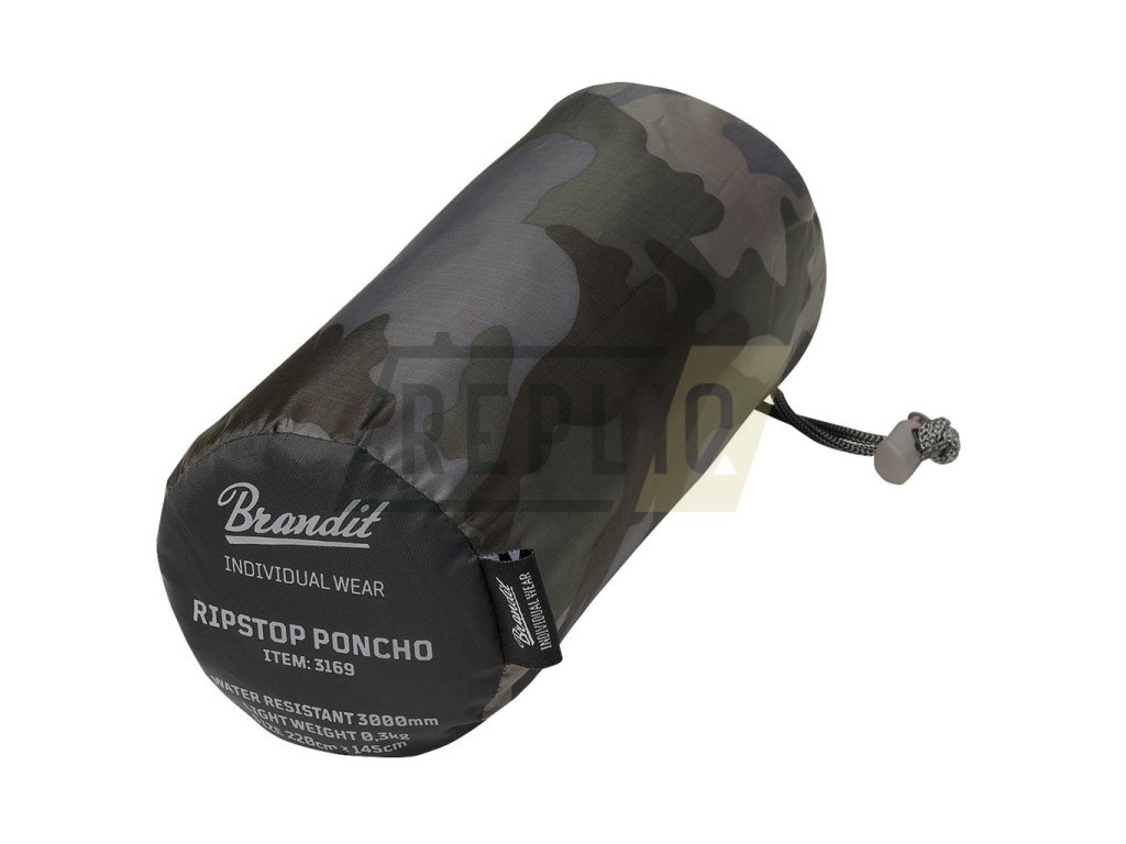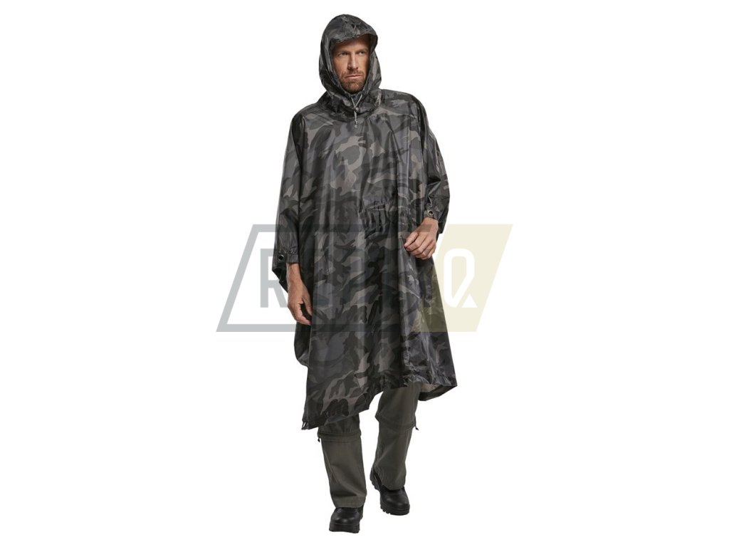 Odlehčené pončo vyrobené z robustního polyesterového materiálu v rip-stop úpravě. Pončo je opatřeno osmi druky a šesti kovovými průvleky, díky kterým můžete pončo v případě potřeby použít jako plachtu či s jeho pomocí vybudovat improvizovaný přístřešek. Kapuce ponča je hluboká a nastavitelná pomocí šňůrky s plastovou brzdičkou. Pončo je dodáváno s přepravním obalem.