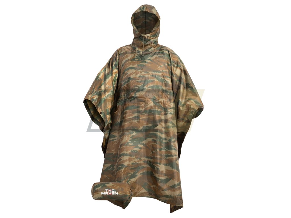 Kvalitní pončo THUNDER od řecké značky PENTAGON. Na jeho výrobu byl použit 210D polyester rip-stop s polyuretanovým zátěrem, který ponču poskytuje vodní sloupec 3000 mm. Pončo má velikostně nastavitelnou kapuci a v případě potřeby se dá v pase stáhnout pomocí šńůrky s brzdičkou. K ponču je dodáván kompresní vak v odpovídající kamufláži.