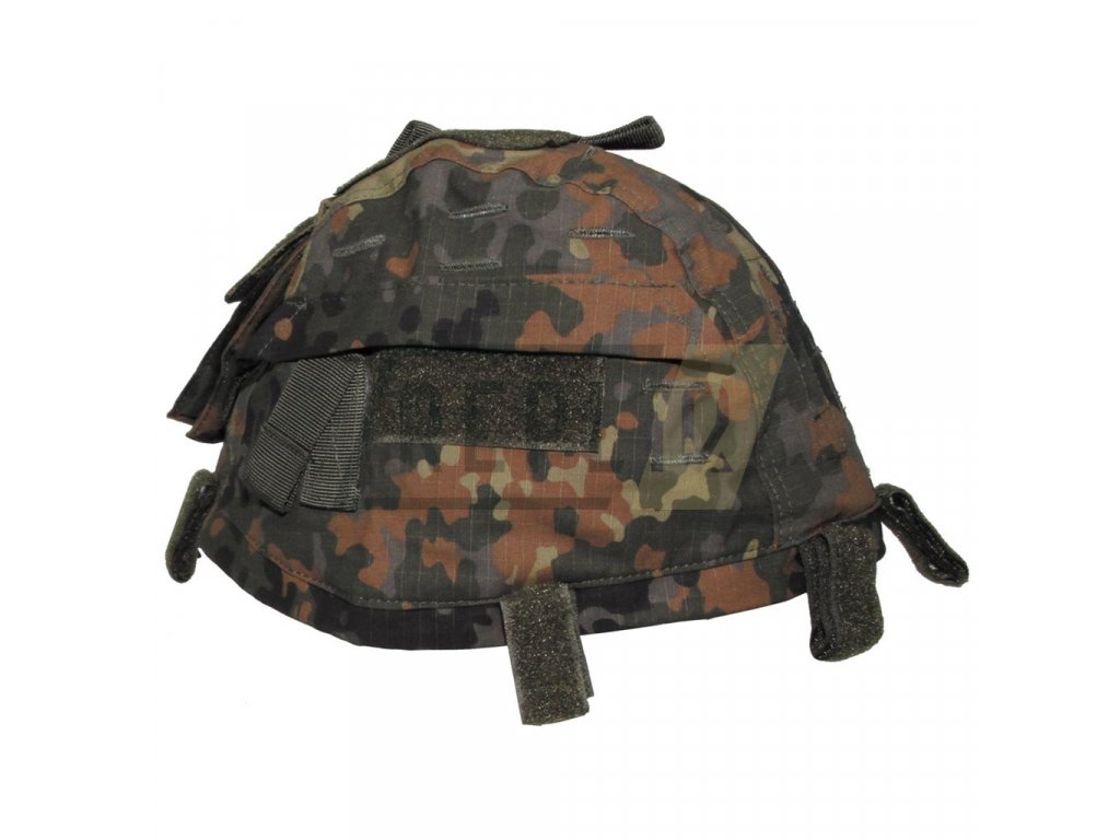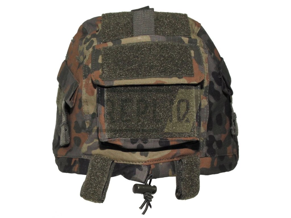 Vhodný na všechny helmy. Pásky na suché zipy pro připevnění potahu. Průvlaky pro kabely a montáže. Obšité dírky pro doplnění maskování. Univerzální velikost.