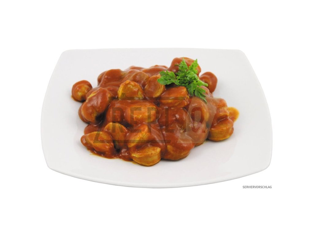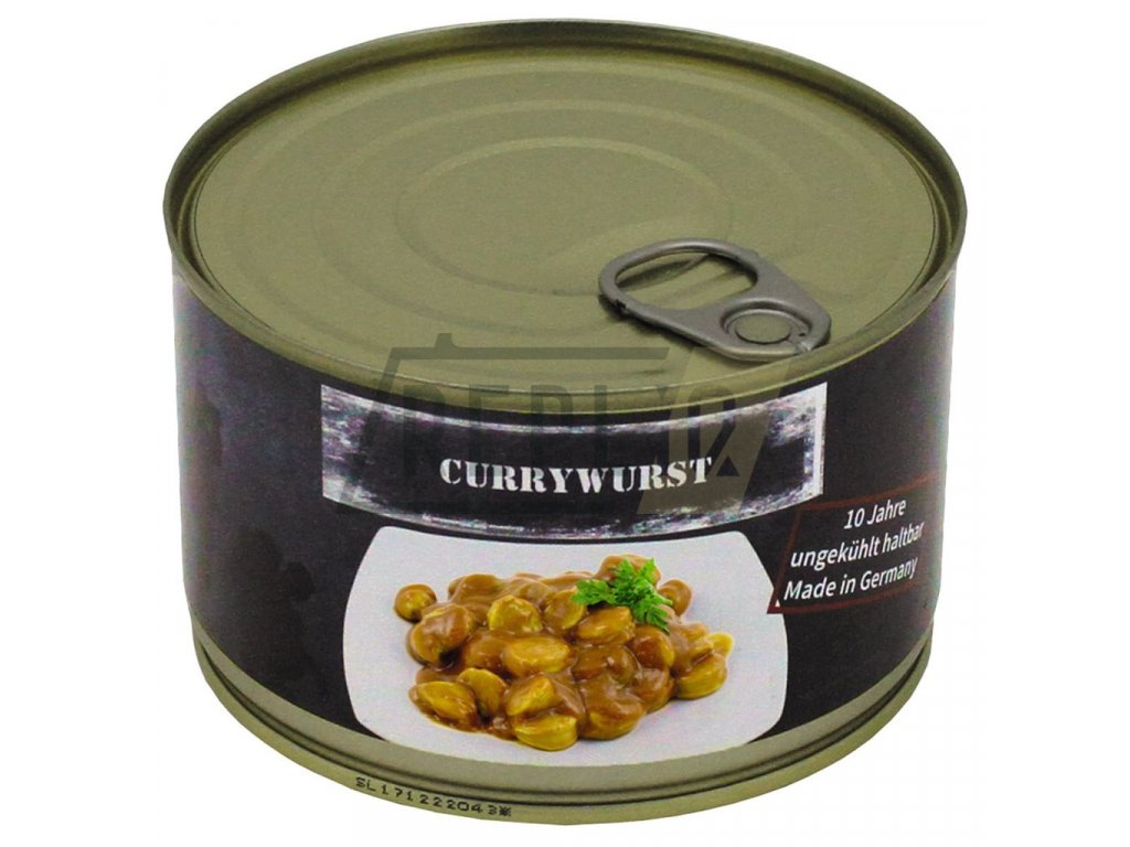 Tradiční německá kari klobása v rajčatové omáčce ručně vyráběná z lokálních surovin. Produkt neobsahuje laktózu ani glukózu, bez mechanicky separovaného masa. 400 g: 75% masa, 25% rajčatové omáčky. Trvanlivost: nechlazený 10 let od data výroby.
