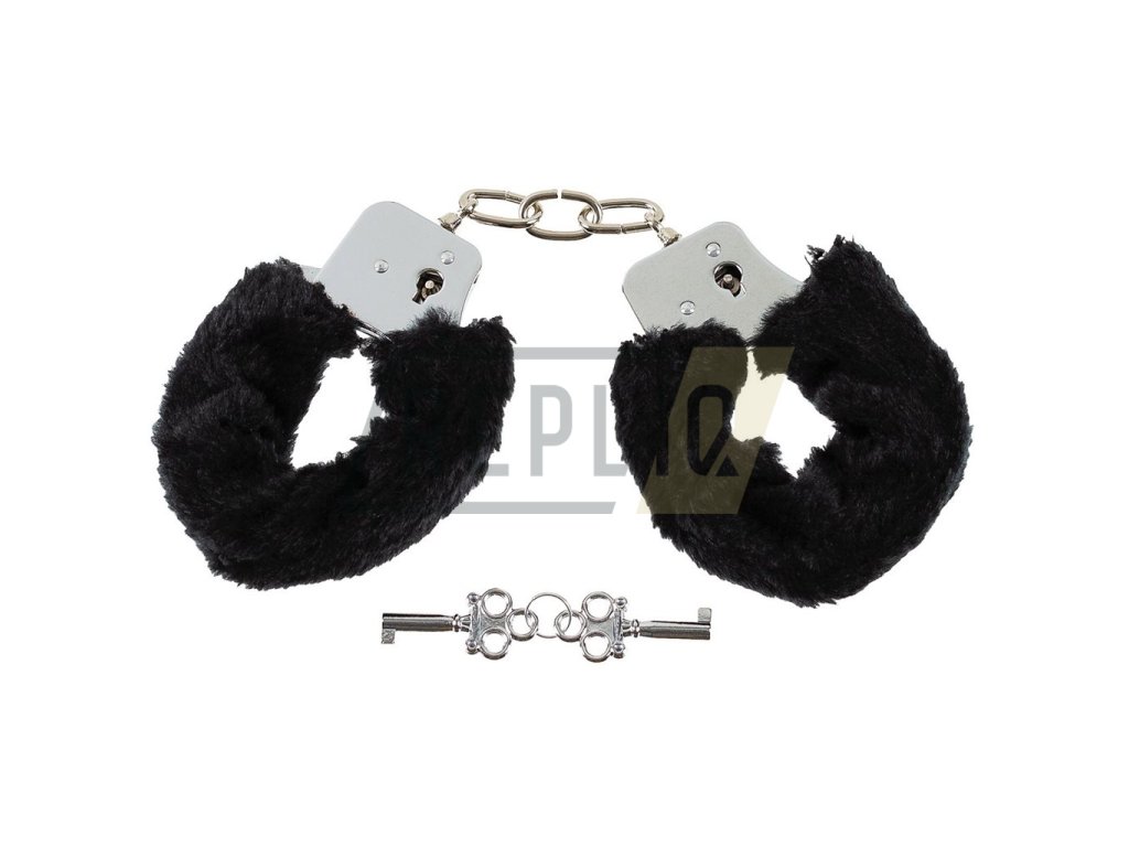 Pouta na ruce s jemným plyšovým potahem černé barvy. Dodáváno s dvojicí klíčů.