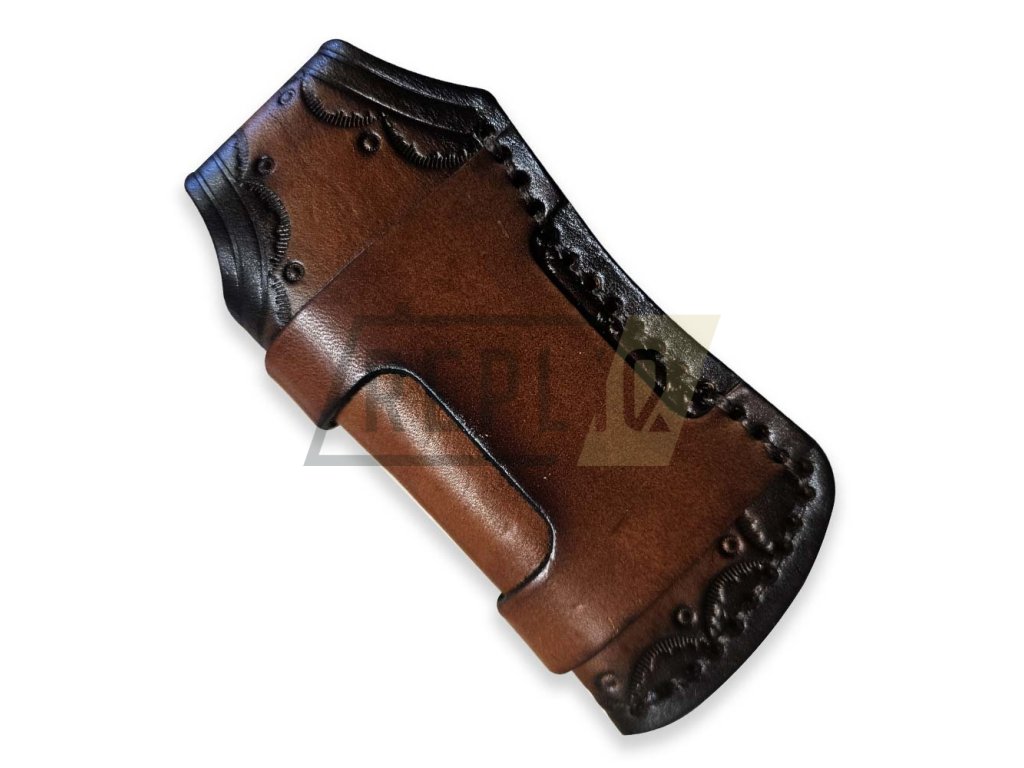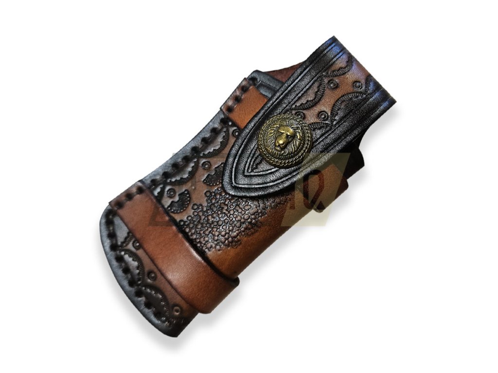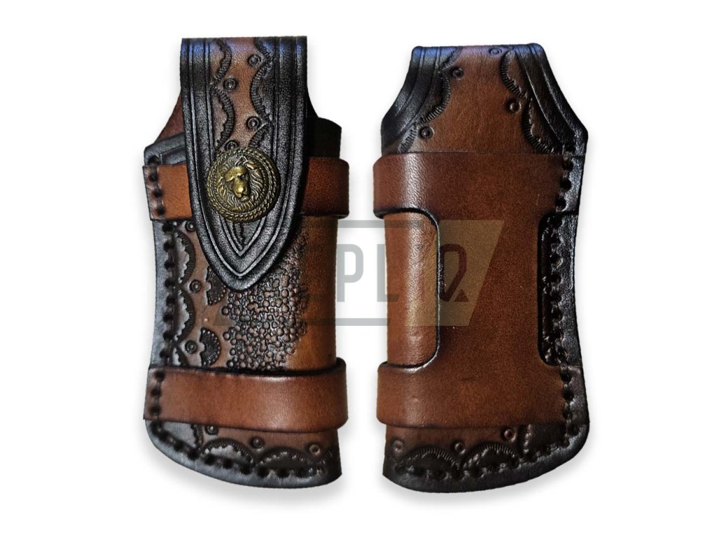 Kožené pouzdro pro zavírací nůž na opasek, ručně stehované
