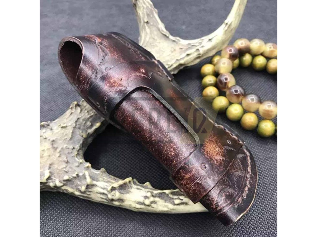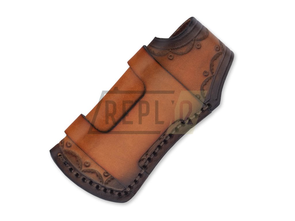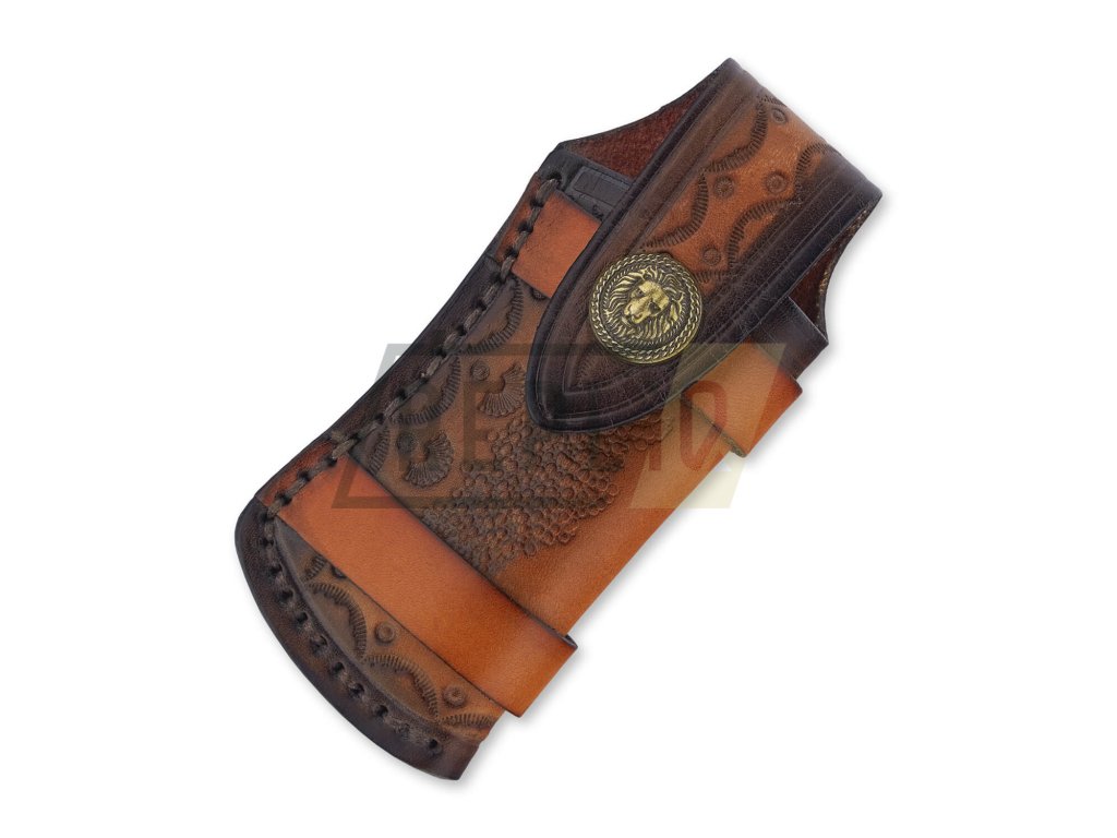 Kožené pouzdro má pevné uchycení pro připevnění k opasku, které je dostatečně velké pro pohodlné protažení opasku o šířce 4 cm a to jak na výšku, tak i na šířku. Nůž je uvnitř koženého pouzdra uzavřen pevným cvokem.