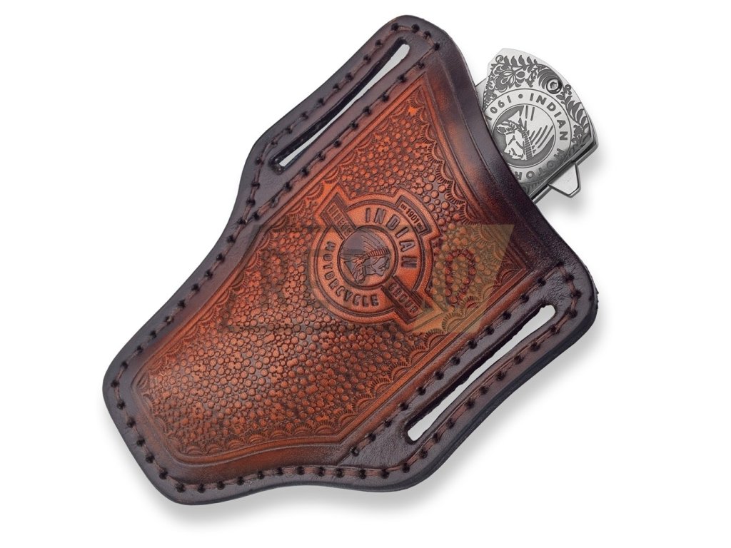 Stylové pouzdro určené pro nůž Dellinger Indian IMGR-01 Black. Při výběru koženého pouzdra je důležité zohlednit velikost a tvar nože, aby bylo pouzdro dostatečně přizpůsobeno. Tím se zajistí, že noži poskytuje optimální ochranu a pohodlí při nošení.